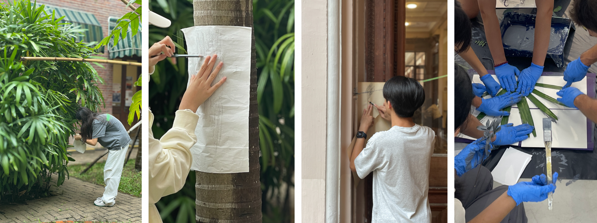 Students learn how to record the physical aspects of space. Throughout this activity, students visit distinct spaces of the HKU campus to document ‘natures’ by frottage, outlining, and object collection. Also, they learn how to stamp the collected objects; through their bodies, they learn concepts of proportion and scale.