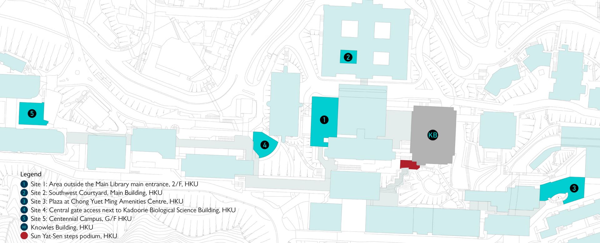 This exercise aims to provide students with hands-on experience in shaping an open space by small interventions at the Main Building Plaza (HKU Campus). Basing on selected scenarios, each team is provided with portable materials and loose furniture to create prototypes of open space.